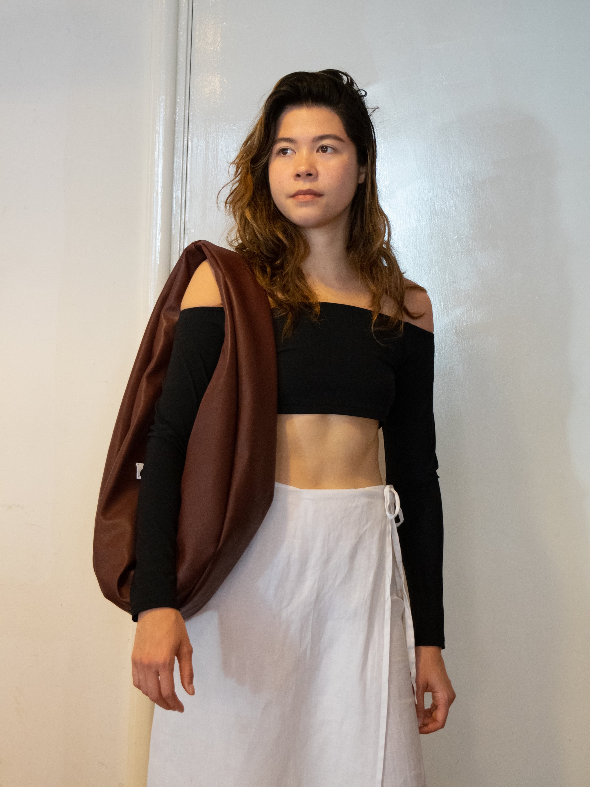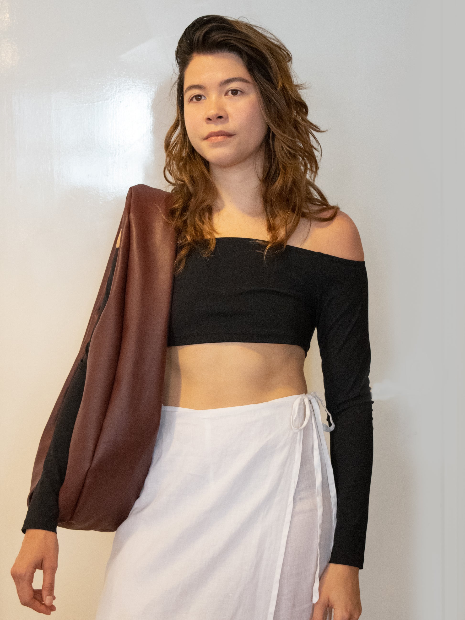 Shoulder bag in cherry red, handmade from left over pieces of vegan leather. Very limited stock.