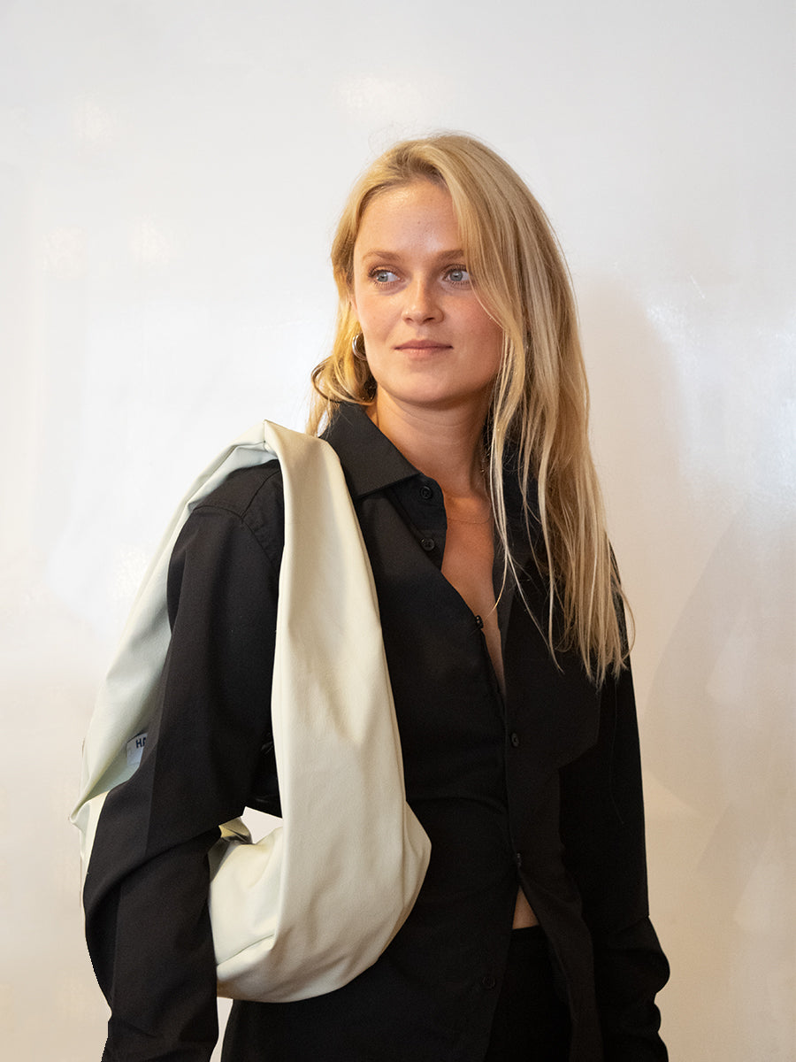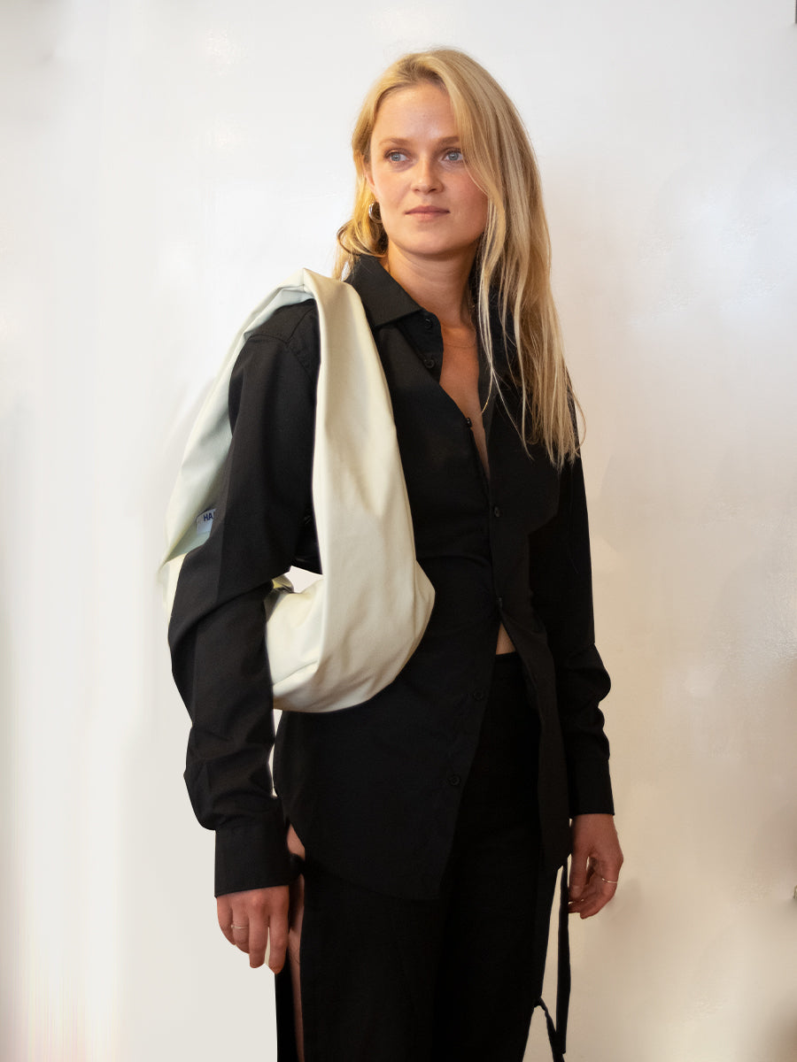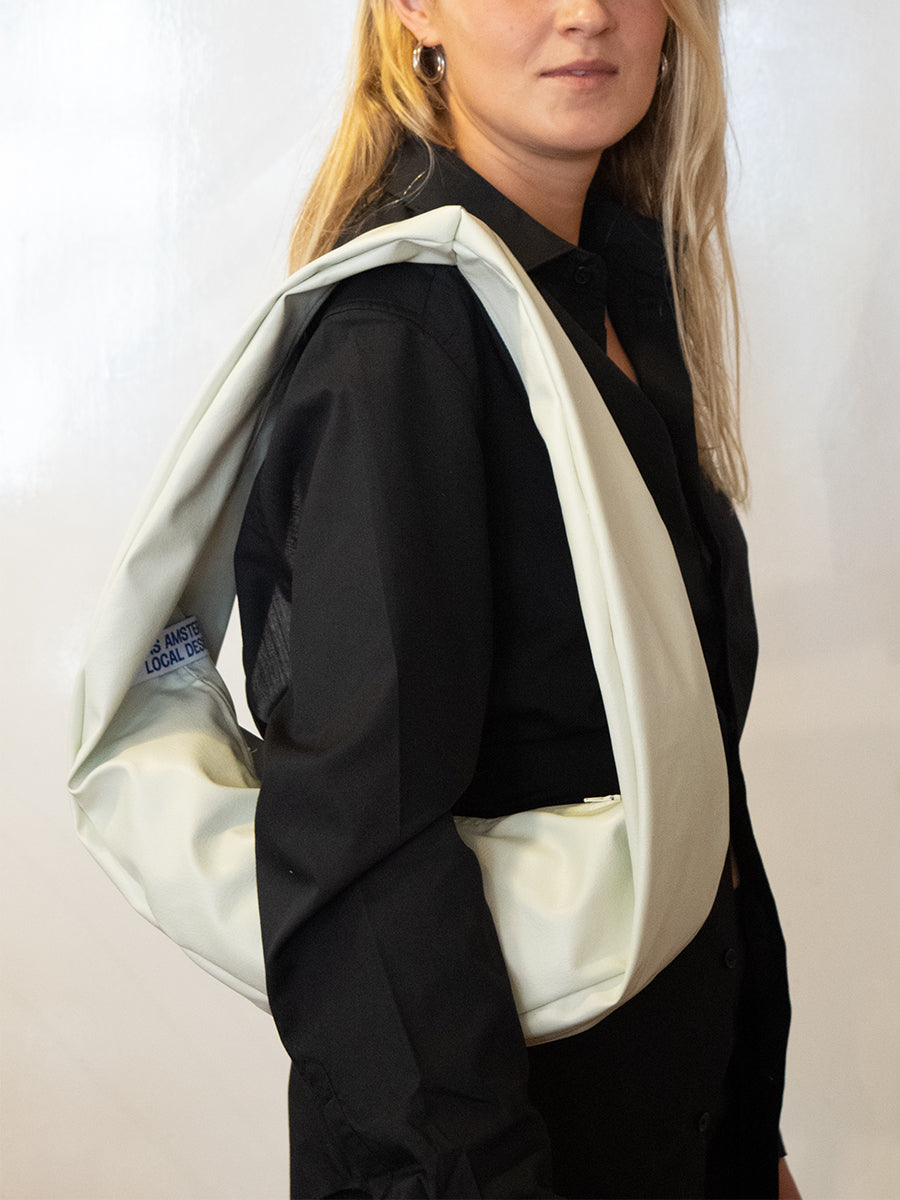 Shoulder bag in white, handmade from left over pieces of vegan leather. Very limited stock.